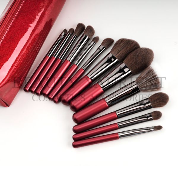 ISO9001 Premium Private Label Red Handle Face Makeup Brush Set 13.6cm Length Images |